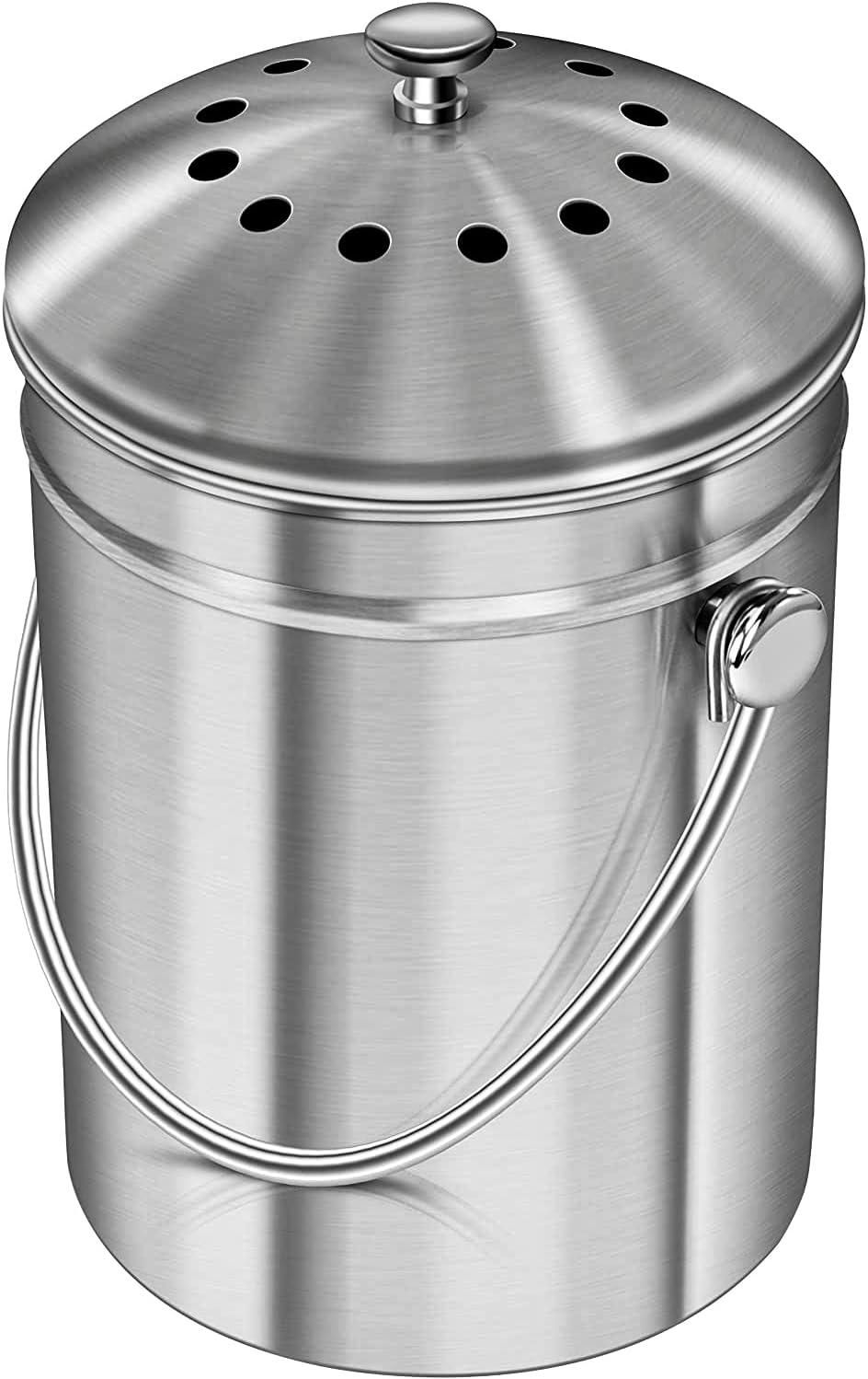 - Facile à utiliser : vous pouvez stocker des déchets alimentaires pendant plusieurs jours dans votre cuisine et pas besoin d’aller à la zone de compost extérieure ou dans votre poubelle verte tous les jours. Stockez les déchets de légumes, les restes de fruits et le marc de café dans le bac à compost de cuisine en acier inoxydable recyclé. Nettoyage facile, mais veuillez ne pas utiliser de détergent alcalin ou acide. Il suffit de nettoyer avec de l’eau chaude et le bac à compost fonctionnera comme neuf.