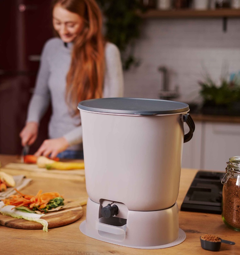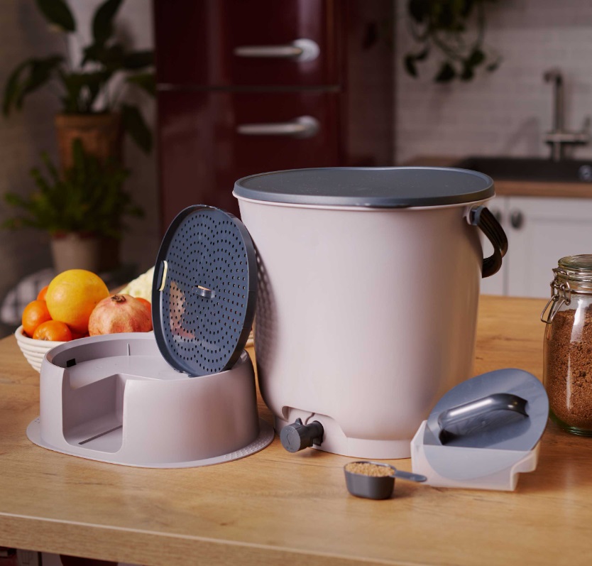 Le composteur de cuisine Bokashi Essential offre un mode de vie sans déchets et un éco-jardinage urbain. Grâce à son superbe design, récompensé par le prix Red Dot, vous pouvez le placer au centre de votre cuisine. À l’aide de l’activateur enrichi de micro-organismes efficaces (EM), vous produisez un engrais naturel pour votre jardin urbain et un nettoyant naturel pour les drains. Vous réduisez le volume de déchets biologiques dans le ménage jusqu’à 25 %, il convient donc à tous ceux qui vivent en milieu urbain.